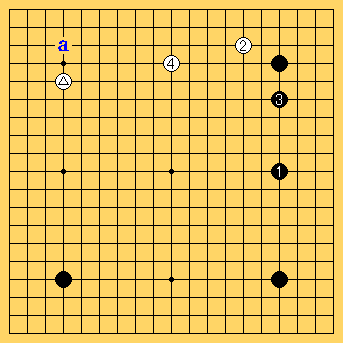 黒aとカカルのは怖いので、いつも と三連星に打っているわ。白にaのシマリを打たれても黒4で悪くないと思うのだけど。