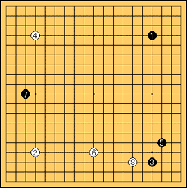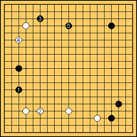 そうか、ワリウチはどちらかにヒラクことで安定するわけだから両方向にヒラクとかえって効率が悪くなるのね。じゃぁ で黒はどう打てばよいか教えて! |