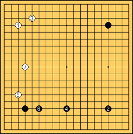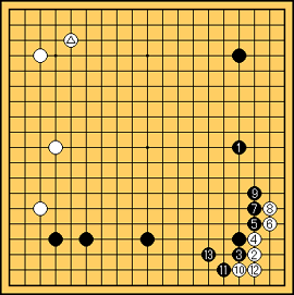 え〜と「2子局で三連星は2ケ所打つな!」なのね。あれ、これって私が今打った手のことじゃないの! |
