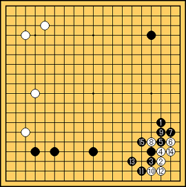本当だわ、右辺はスソアキになってしまったわけね。そうか、もともと黒は下辺重視の方針だったのに右辺まで欲しがったために観音ビラキになってしまったのね。 |