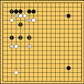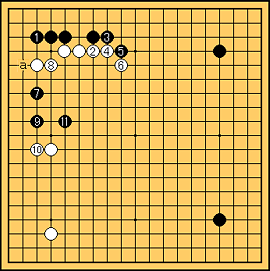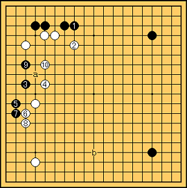 え〜、 で白bに打たれた時でも左辺に打ち込むのは怖いのに の時に打ち込むなんて自殺行為としか思えないわ。 |