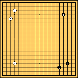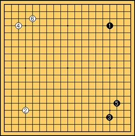と、思うよね。でも実は同じシマリでも の方が よりも価値が高いのだよ。だからこの布石は黒が失敗なのさ。 |