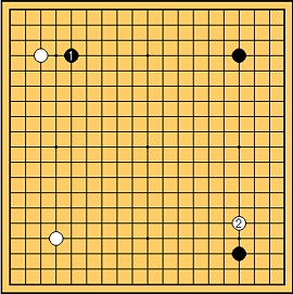 なかなか良い質問だね。では右図を見てご覧。 と が小目なので黒の次の一手は右下のシマりか左上のカカリ、どちらかなのだけれどひろみちゃんならどう打つ? |