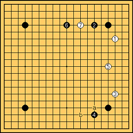 ごめんごめん。要するに9子局の時と同じく黒aは厳しいけれど白に反撃されると難しくなるし4子局ではそこまでする必要がないので避けたほうが無難と言いたかったのだよ。それに黒aが打ちこなせる人は4子も置く必要がないしね。 |