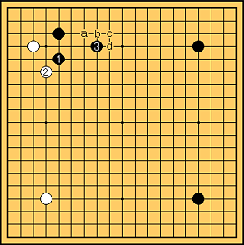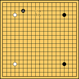 と打たれると上手く封鎖出来そうにないよね。だから白a〜cの3ヶ所は広いハサミなのさ。でも白dのハサミは