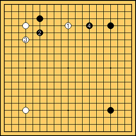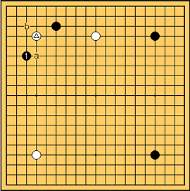 そう、気が付いたようだね。手順は違うけれどこの形は広いハサミに黒が一間トビをした前図と同じなのだよ。