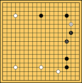 のような働きのない(不要な)石を打つことは黒は一手パスをしたのと同じことなのさ。互先で一手パスは致命的だよね。