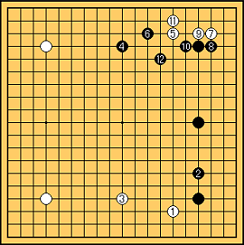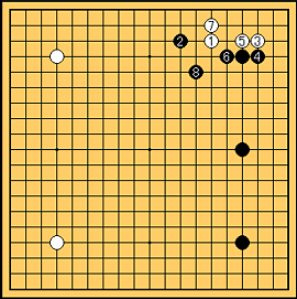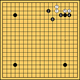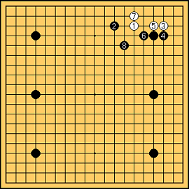 一間バサミとツケノビは目的が同じなので右辺が三連星で上辺に何もない時は三子以下なら一間バサミ、四子以上ならツケノビと覚えておけば便利だよ。