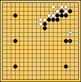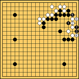 正直でよろしい(笑)右辺の白は とスペースを狭くして に と急所に一撃を加えると生きることが出来ないのだよ。 は仕方なく 〜 で簡単に白死!どうだい、これなら打てるだろう。