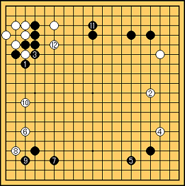 と受けるしかなさそうね。でも白は中央の石が不安定だから黒が有利な戦いじゃないのかしら。