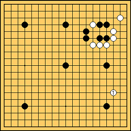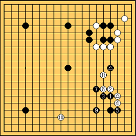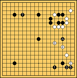 う〜ん、次に黒は下辺に打とうと思ったのに。これではツケノビ定石が働かず嫌な感じだわ。
