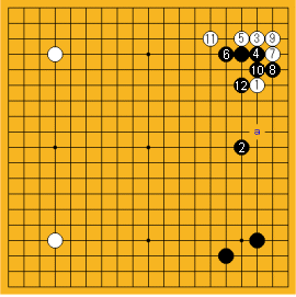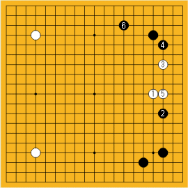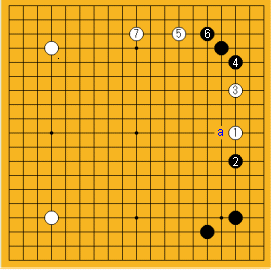 この場合は と打つのが正解!これなら 〜 と打たれても右辺の白は がaにある前図と比べると安定感があるので 〜 と打つことが出来るだろう。