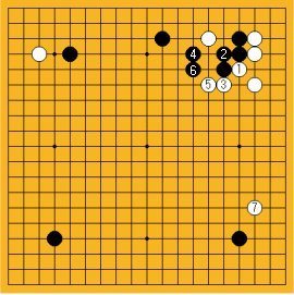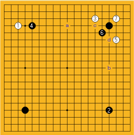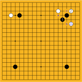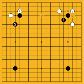 右上は黒が不利な場所なので黒cやdとツケて戦うのは最悪!