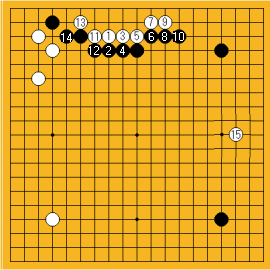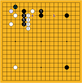 う〜ん、黒は厚みが出来たけれど右辺にワリウチを打たれると働きそうにないわね。そうか、黒aのツケが良くなかったのね。