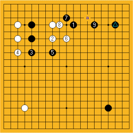 のサガリ。どう、黒は攻めながら右上に地を作る理想的な展開と思わない?!