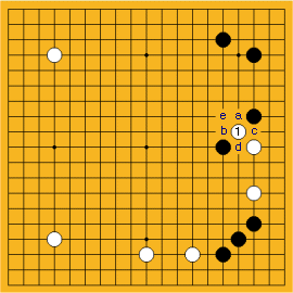 なるほど、黒はa〜dいずれに打ってもサカレ形になってしまうからいけないのね。黒eは構わないのかしら?