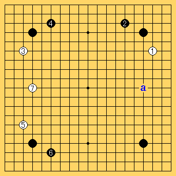 白が富士山型に打ってくれない時の打ち方はお兄ちゃんのおかげでバッチリなのだけど、今度は のケイマ受けに白がaとヒラキを打ってくれなかった時の対策を教えて欲しいな。
